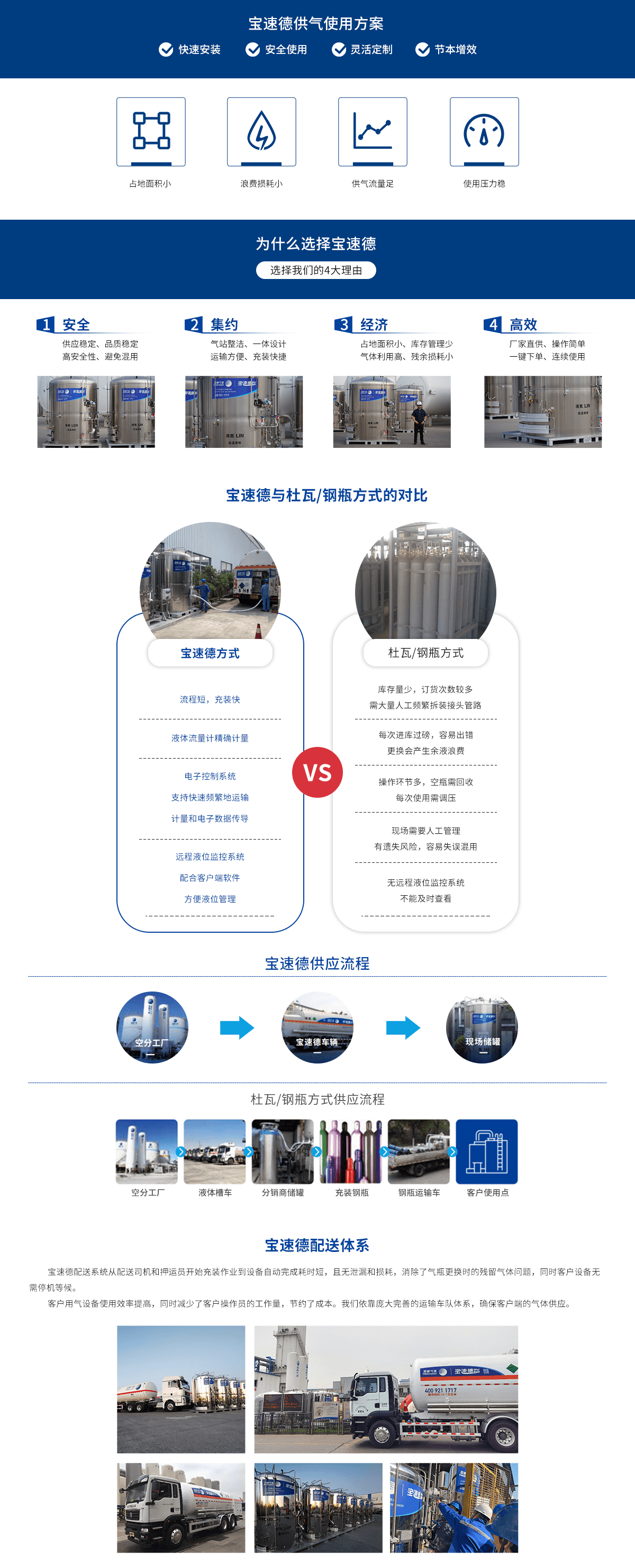 宝速德效劳系统包括履历富厚的应用手艺支持团队、外部销售团队、内部销售团队以及驻扎在外地的客户工程效劳团队,,,,,,不但为客户提供供气计划设计、气站现场施工、气体配送,,,,,,还可提供气体使用相关的增值效劳。。。。。。。